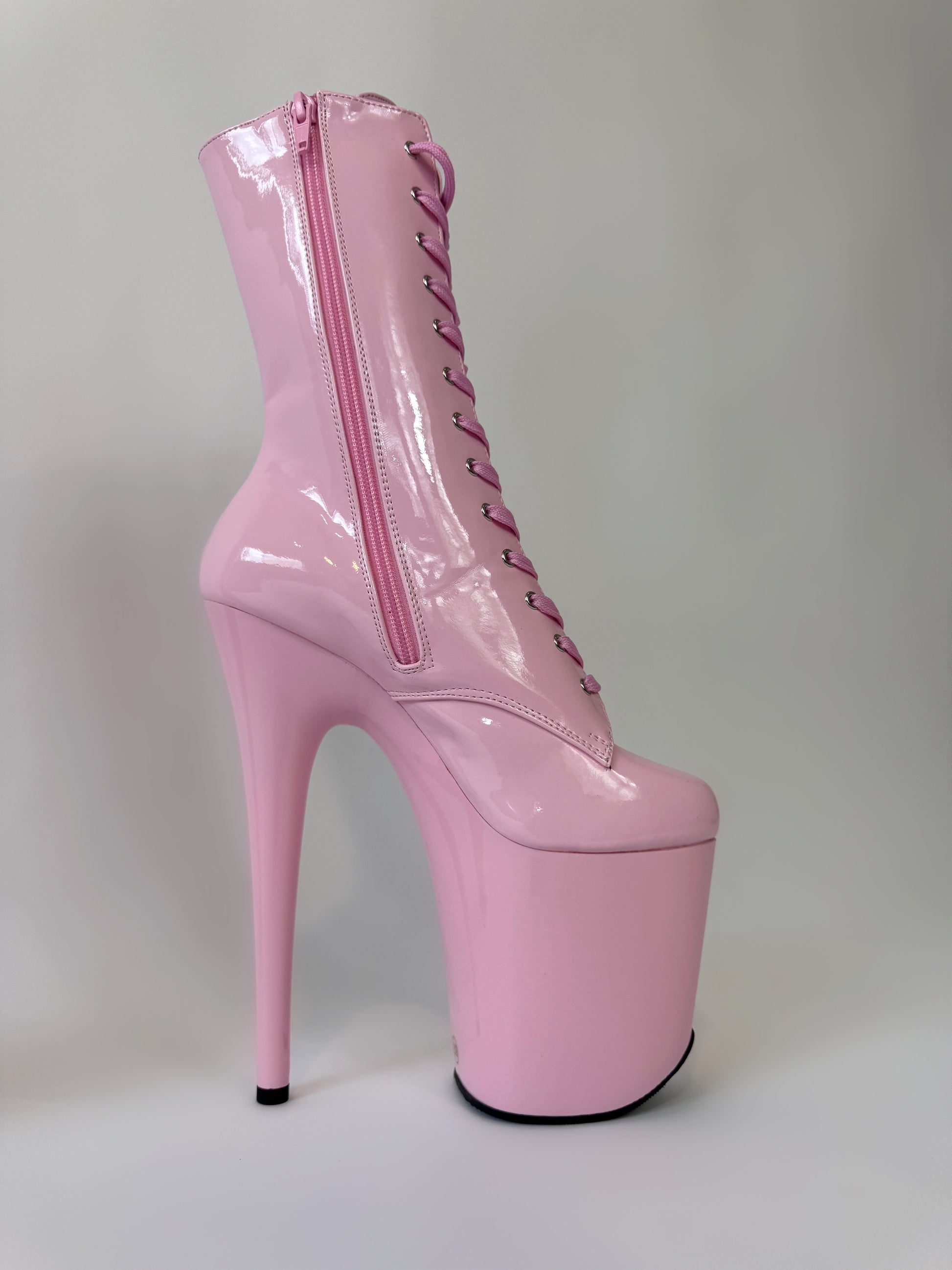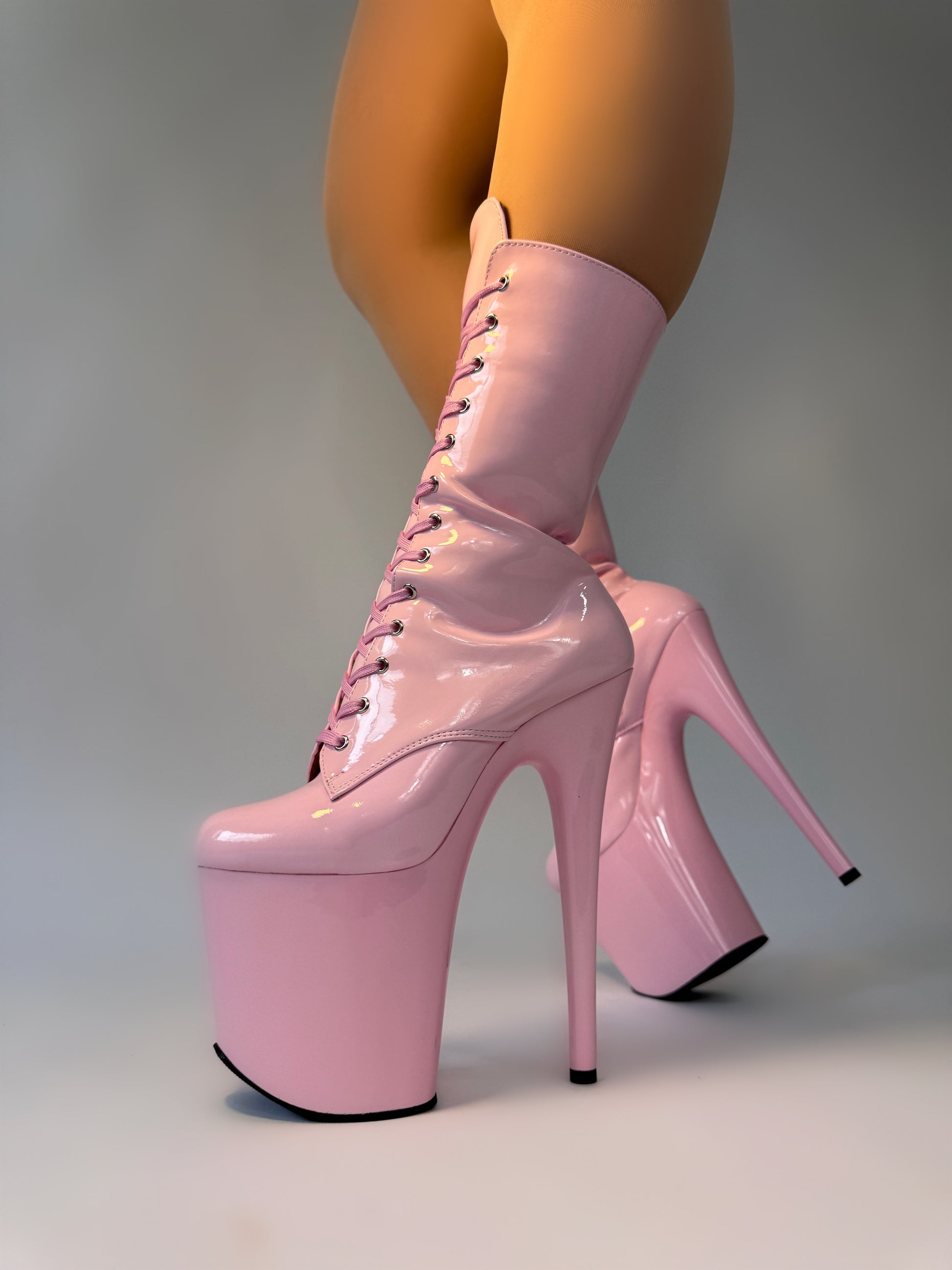 Featuring a sleek, glossy finish, these boots are sure to turn heads and add a touch of glamour to your pole dancing routine.