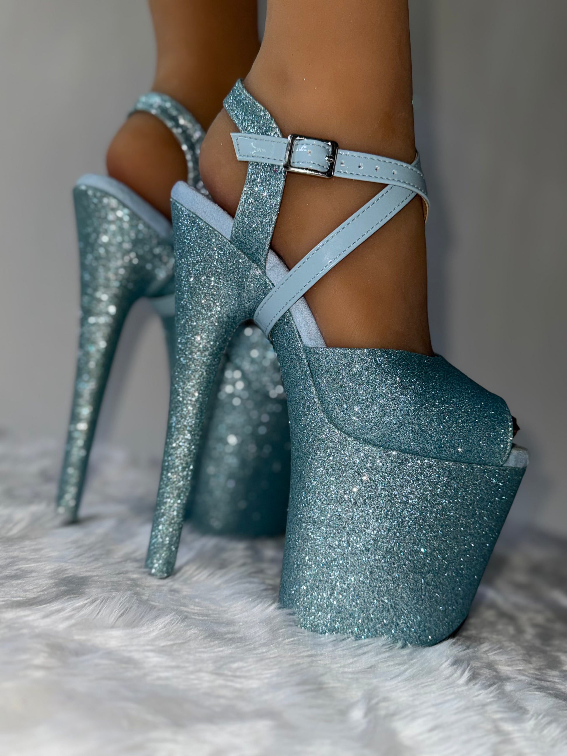 Stardust Collection, features a glitter exterior that catches the light with every spin, ensuring you shine bright on stage. Made with an extra ankle strap, they provide enhanced support and security, allowing you to dance with extra confidence!